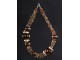 Naszyjnik wykonano z bursztynu nieoczyszczonego.Dodano kule ceramiczne w kolorze miedzianym o średnicy 2,75 cm większe i 2 cm mniejsze.Dodatkowo naszyjnik rozświetlają plasterki z białego korala o średnicy 1,7-1,8 cm