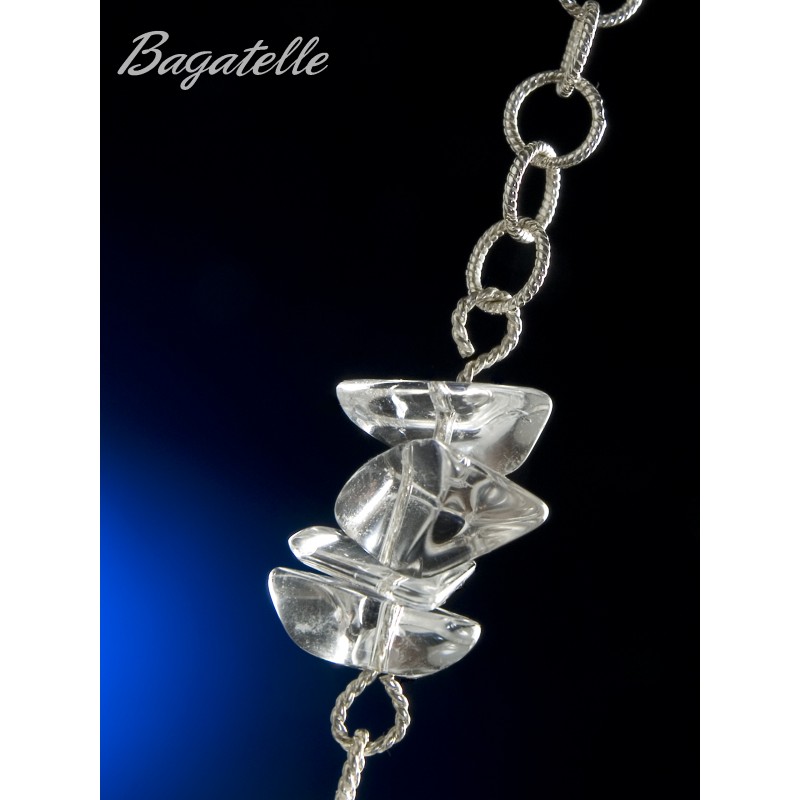 Naszyjnik wykonany z kul ceramicznych o średnicy 2,5 cm oraz kul kryształu lodowego o średnicy 2 cm.Całość przetykana drobnymi kryształkami górskimi i łączona srebrnym łańcuszkiem